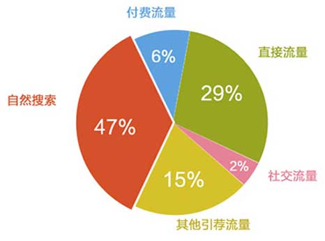 次的訪問數據。分布這些數據發現自然搜索占近一般的站內流量來源(47%),社